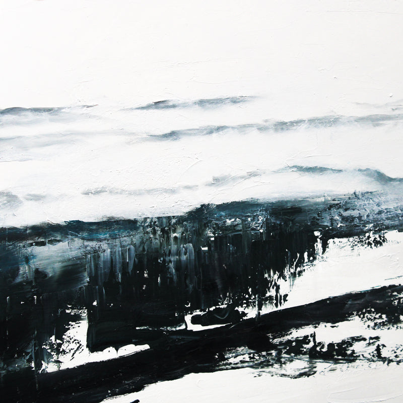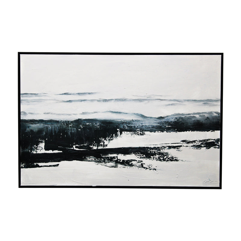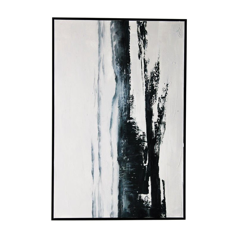 This bold rectangular canvas depicts an abstract composition in abstract tones of cream and black. Textural brush strokes add interest. A great piece for adding impact to a wall space, this canvas will bring a new artistic expression to your interior.