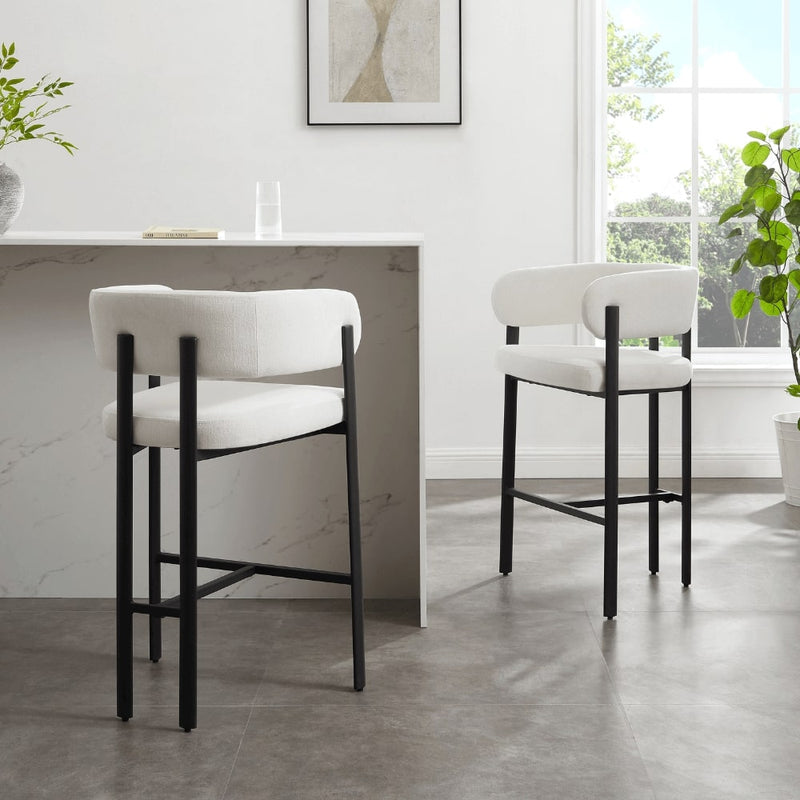 Elevate your space with the modern elegance of the Elle Barstool, where comfort meets sleek sophistication. This thoughtfully designed barstool features a sturdy matte black powder-coated frame that offers both durability and a striking visual contrast to the soft ivory linen upholstery.