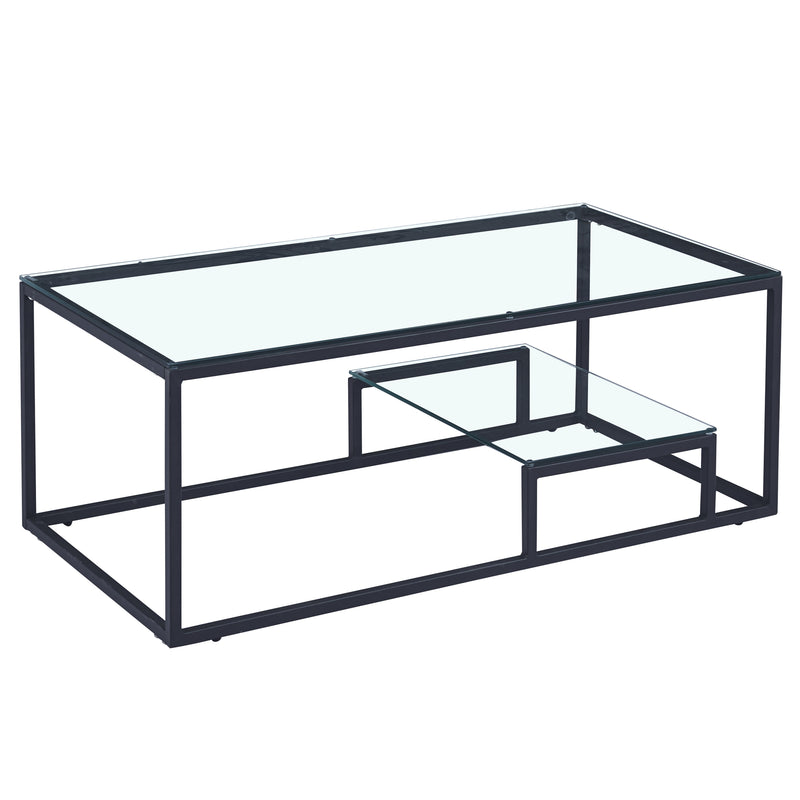 The Enzo minimalist glass coffee table with matte black legs is the ideal centrepiece for modern living rooms. With a subtle geometric frame and two clear glass display surfaces, the Enzo looks gorgeous styled with your favourite coffee table books and our luxe decor.