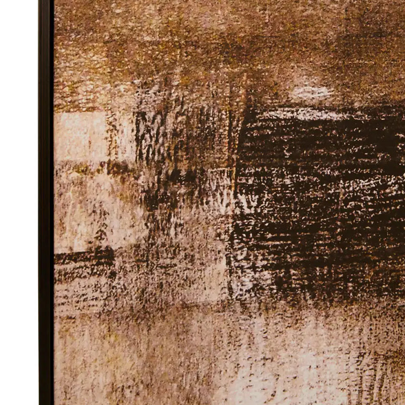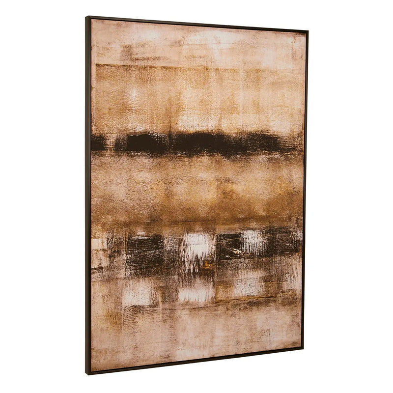 This substantial piece of wall art makes a wonderful statement piece. With a painterly and abstract style featuring brush stroke detailing, this modern canvas sits within a narrow wooden frame and lends itself to a variety of rooms thanks to its black and neutral tones.
