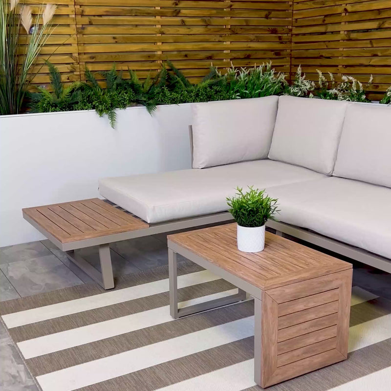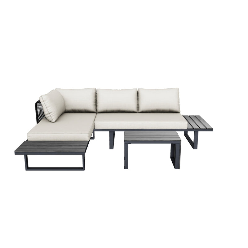 With its innovative modular and multi use layout, this corner sofa set adapts to your needs. Easily reconfigure the pieces into a spacious corner sofa, a dual-side lounge layout, or even a daybed-style setup for sunbathing. It’s ideal for both large outdoor patios and compact garden spaces.