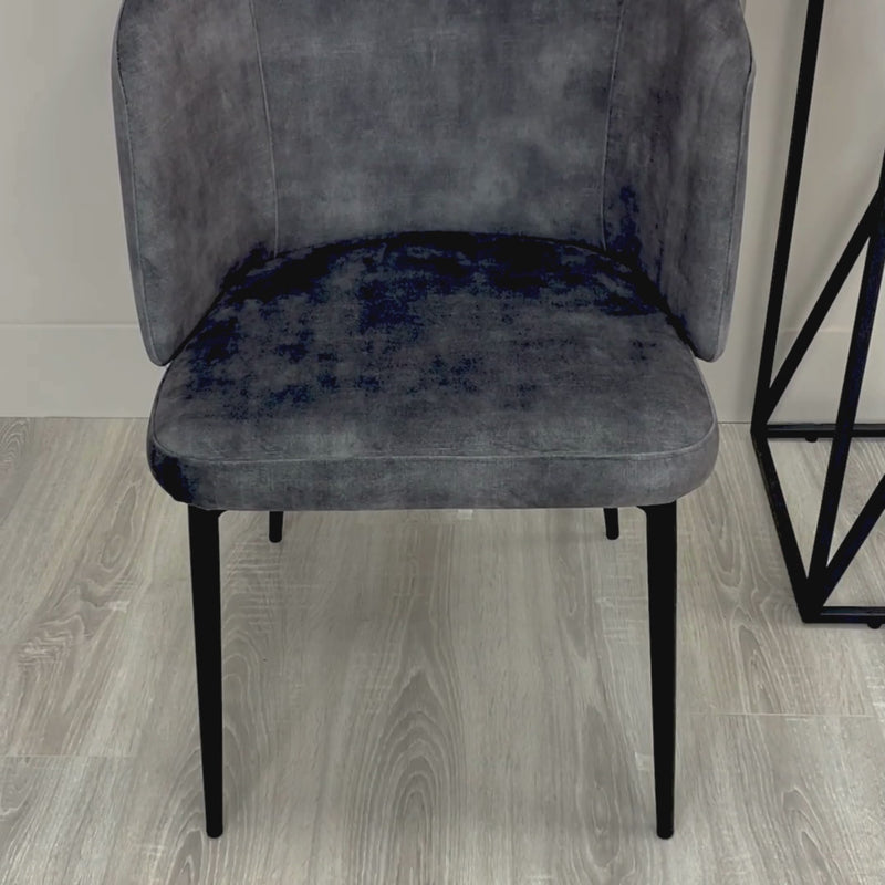 Add a touch of modern elegance to your dining area with our Castelle Grey Velvet Curved Dining Chair. Crafted with luxurious velvet upholstery and a sleek, contemporary design, this modern dining chair combines comfort and style effortlessly. Its softly curved backrest provides excellent support, making it perfect for long dinners or casual gatherings. The slender black metal legs lend a minimalist yet chic aesthetic that complements various interior styles. Whether used as a velvet accent chair in your dining room or as an extra seating option in your living space, this versatile contemporary seating piece is designed to elevate your home decor.
