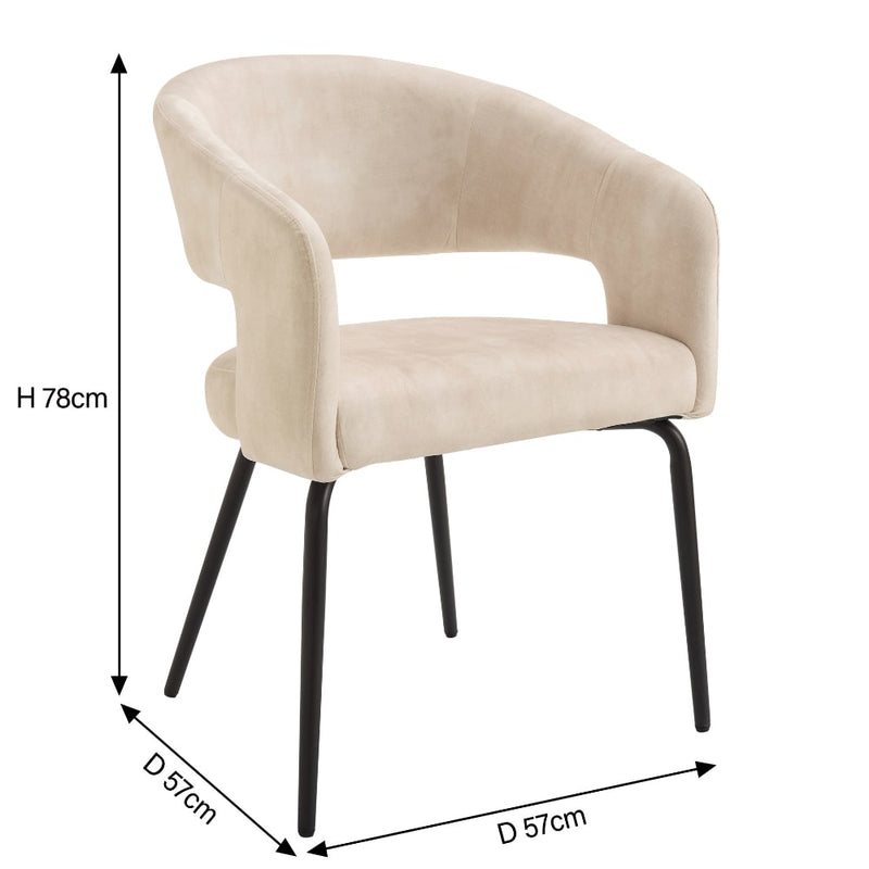 Elevate your dining space with the Jasmine Cream Dining Chair, where sleek modern design meets timeless sophistication. Upholstered in a luxurious cream velvet fabric, the Jasmine chair brings a warm, inviting tone to your interiors—think of soft vanilla, muted champagne, or gentle almond. It's a versatile neutral shade that pairs beautifully with natural woods, marble, monochromes, or bold accent colours.