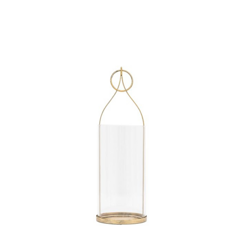 The Kyra Lantern with its elegant curved form is a beautiful addition to a space. Made from antique brass finish iron, the simple curves lead up to an elongated arch, finished with a gold ring. Each base holds a church candle, held inside a glass cylinder. Available in two sizes, position together for a candlelit moment, or individually for a focal point cosy glow.