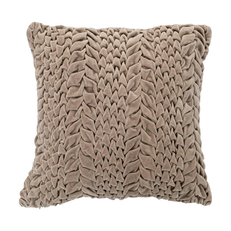 The Dunand is a stylish statement cushion perfect for your lounge or bedroom. In an earthy rustic warm brown tone, the smocked detail provides texture, and the super soft velvet brings comfort and style. Pop by itself and let the gorgeous smocking detail shine, or mix with other plain cushions to contrast. Each cushion comes with its own feather filler, for ultimate softness.