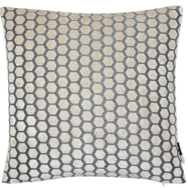 Perfect for adding subtle texture to a sofa or chair, the Jorvik cushion in cream velvet features a honeycomb pattern on the surface in a contrasting cream thread. Filled with a feather inner, this cushion will take centre stage positioned on a chair, or mixed with others on a sofa for added luxe softness.