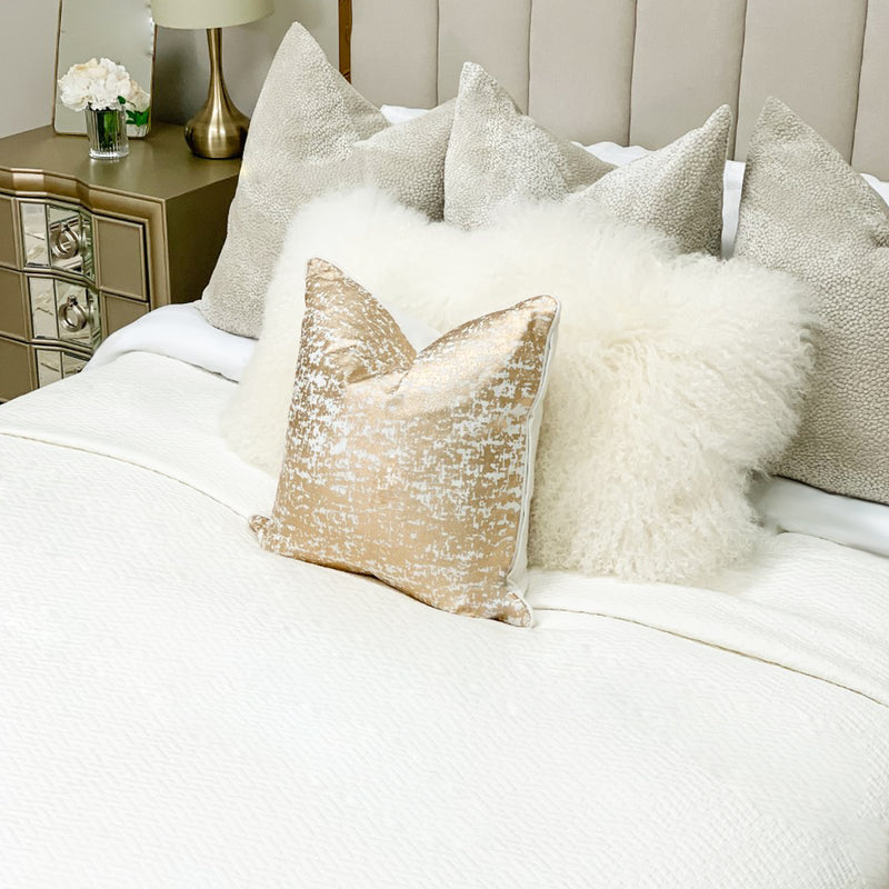 The Mayfair satin cream throw blanket is the perfect piece to add luxurious layers to your bed or sofa. In a gorgeous off white tone, the Mayfair throw blanket comes in a well proportioned king size and includes embroidered ‘brick stitch’ embroidery.