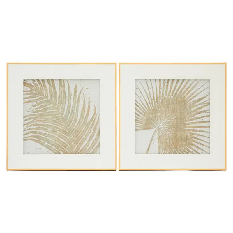 This pair of large square frames with botanical art combine neutral style with a touch of luxe. Surrounded by a thin cold metal frame and created using beige tones in two leaf designs, we love this modern art duo styled above a bed or stacked in a living room.