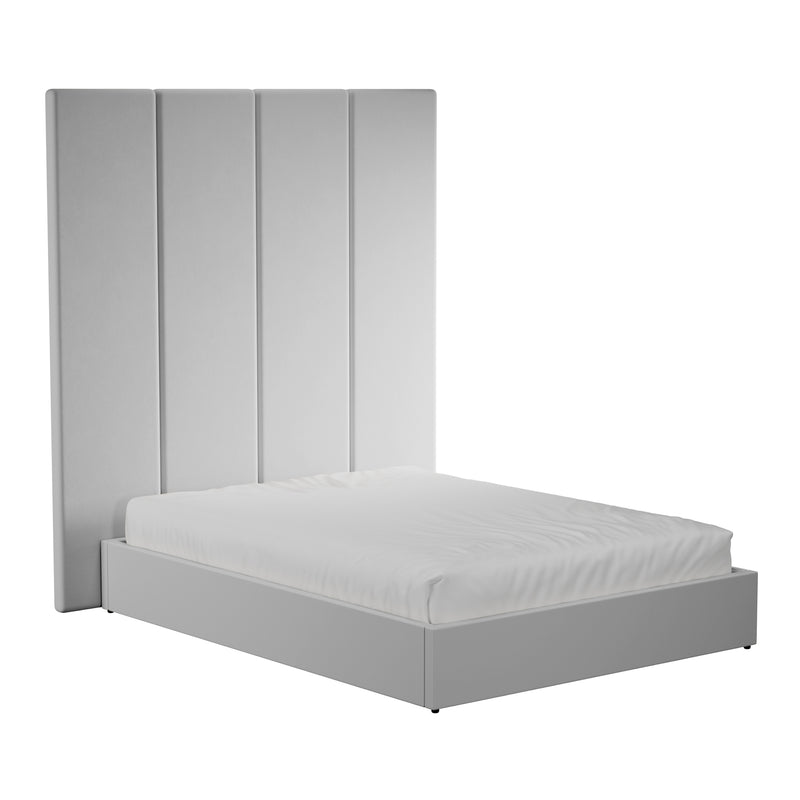 The large statement wall panel bed with ottoman storage will make a stunning centre-piece to your bedroom. This bed features an extra tall headboard in a plush light grey velvet upholstered broad panel design. Designed with style and practicality in mind, this bed also includes hidden ottoman storage with front lifting access. Available in both double and king sizes, the tall panel bed exudes luxury. Comprising of separate parts, this bed is easy to deliver to a room of your choice. Simply mounted to the wall in panels, the base is then pushed into the headboard to create a luxurious haven in any bedroom space. This is a standard panel headboard fitting technique so most tradespeople will be familiar with the fitting technique.