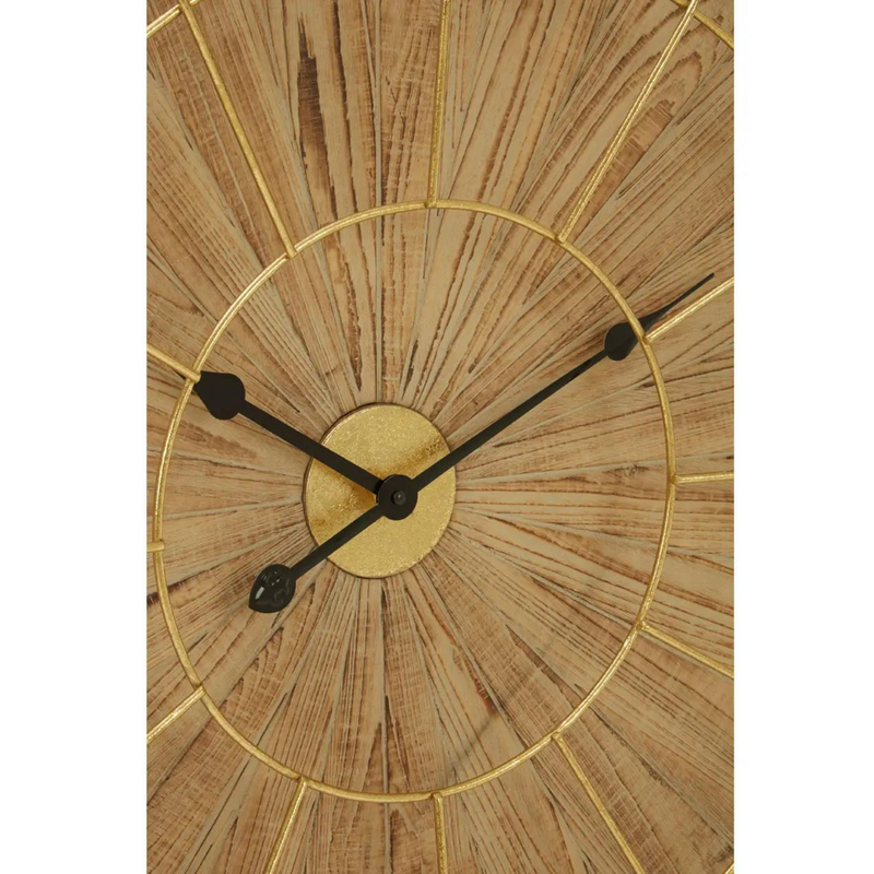 The Yaxi clock brings a natural contemporary element to your home décor. Featuring a solid wooden face with a bold grain pattern, the face is divided by slim gold coloured metal rods into a segmented design. A round iron plate sits at the centre, upon which is mounted a pair of traditional black hands.
